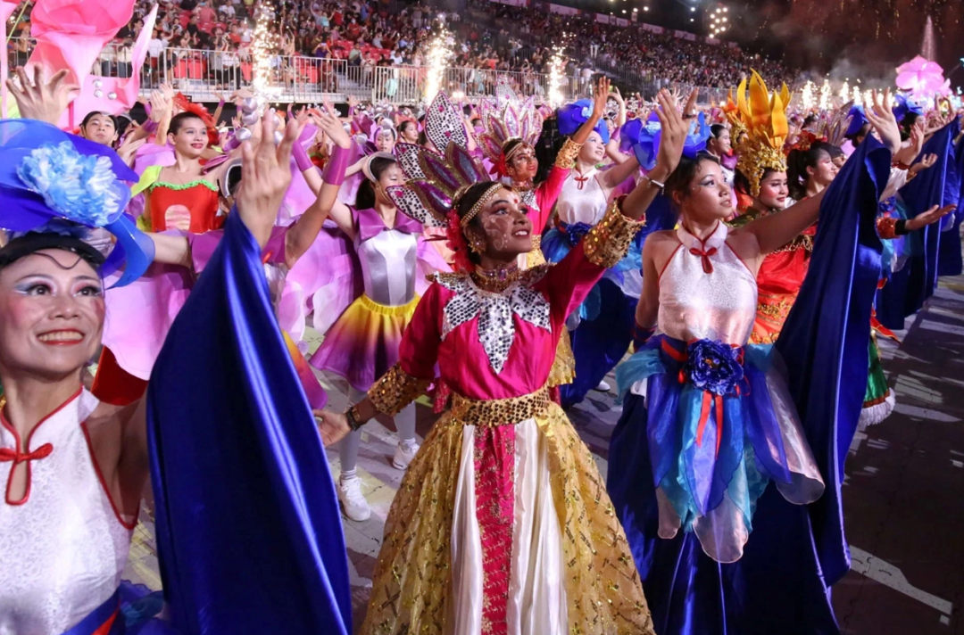 在这里你将看到融合了华族、马来族、印度族等文化元素的巨型发光服饰、 energetic 舞蹈和音乐,是一场生动的文化教育课。