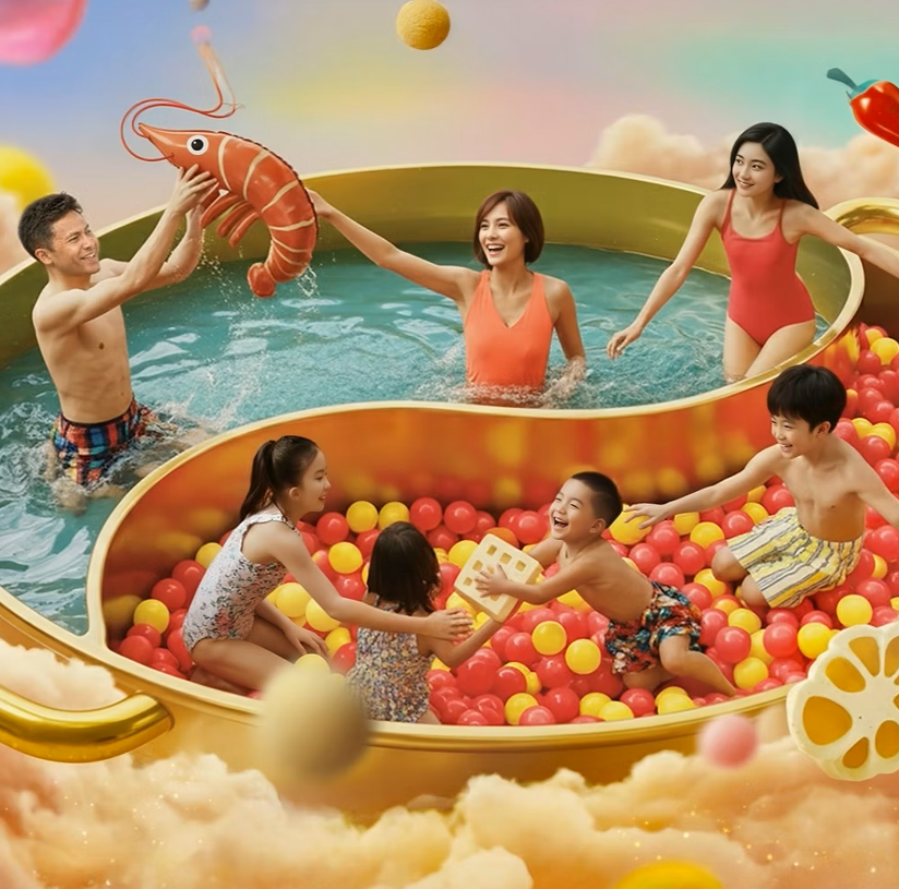 Wild Wild Wet 新春变身火锅主题水乐园,泳池遍布虾、蟹棒等火锅食材造型充气浮具,打卡麻辣风波波池,邂逅园内巨型美食装置,沉浸式玩转趣味年味水上游乐。