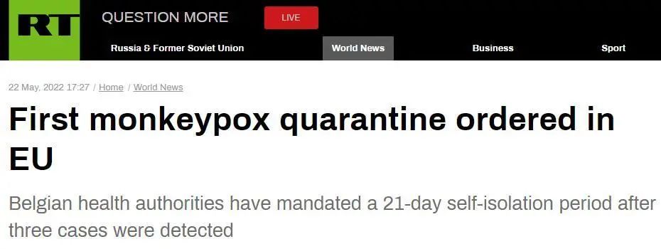 及比利时之后,当地时间22日,英国卫生部门建议,猴痘密接者自我隔离21天。