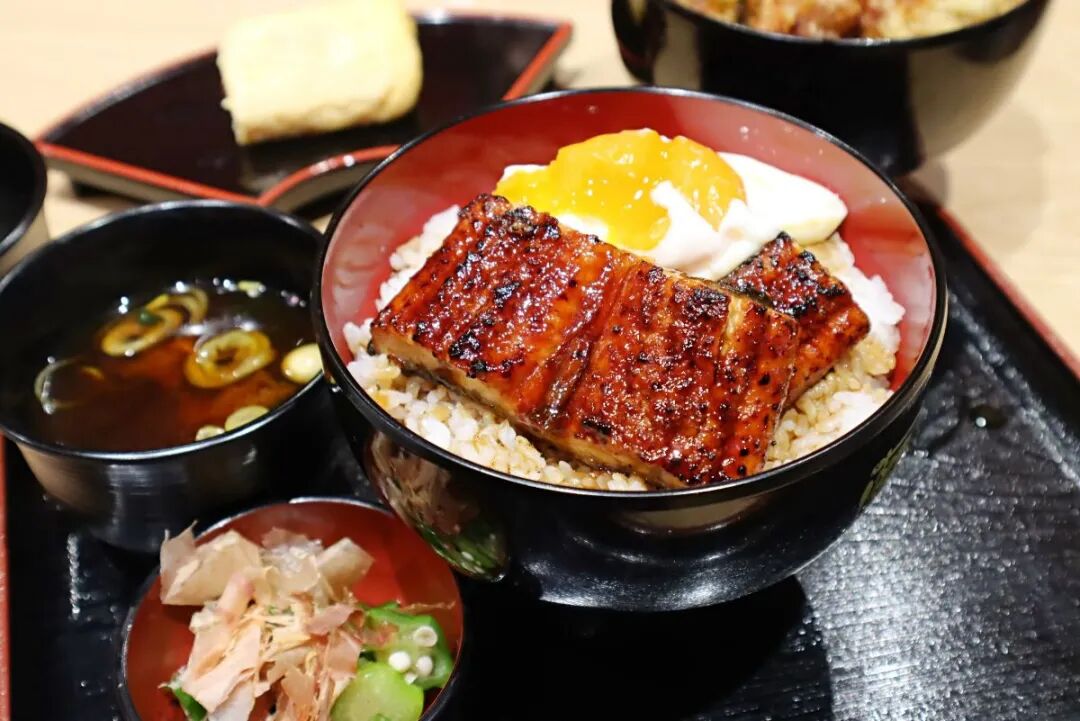 源自名古屋的 Unajyu(9.80 新元),铺着烤熏鳗鱼与珍珠米,可搭配调味品、高汤等四种方式享用,实惠又美味。