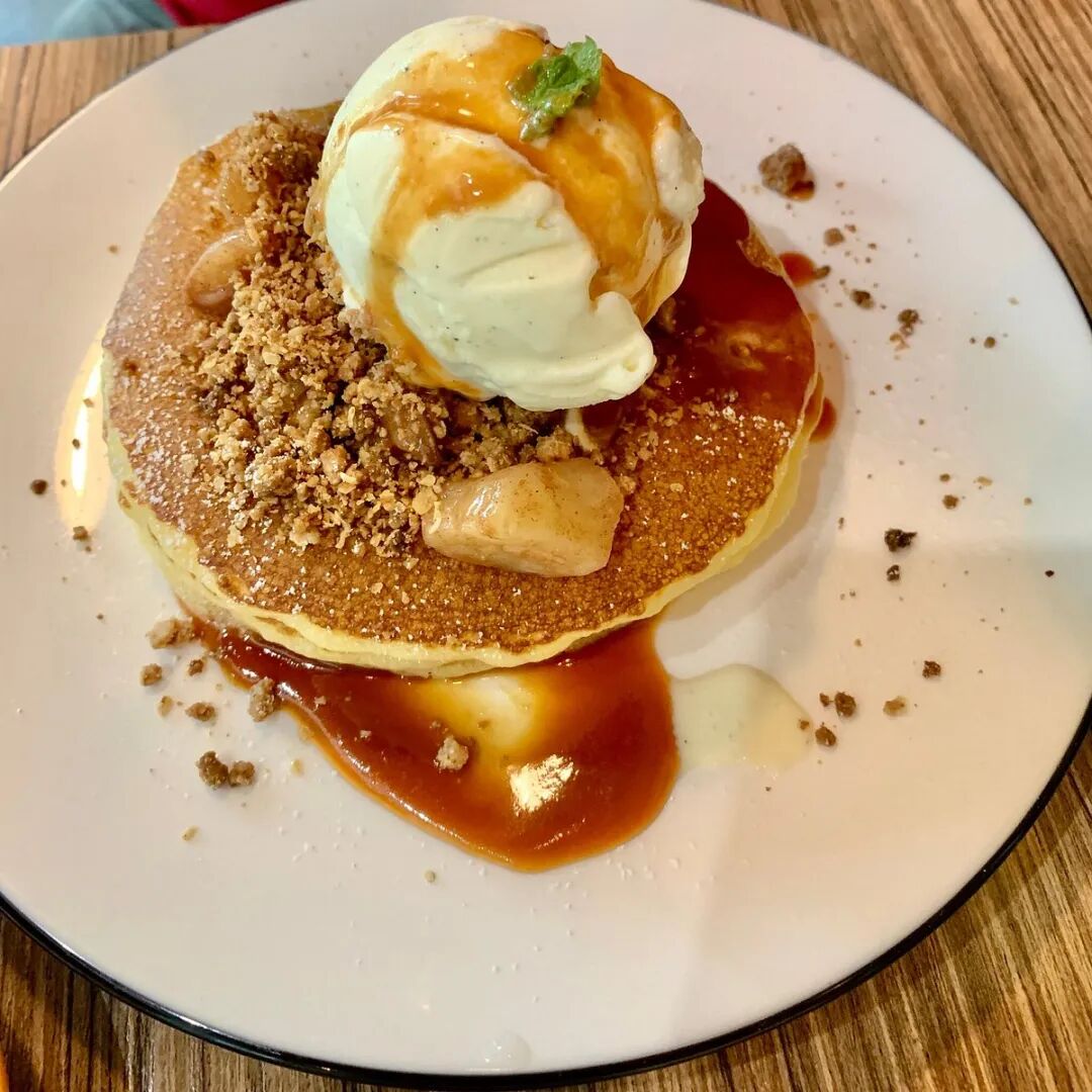 Flippin' Good 的煎饼以超大蓬松闻名,单份 2 张起价 7.90 新元,饿了可选 24.90 新元的烙Flapjacks Platter(含 4 张煎饼及多种配菜),还有白巧克力片等趣味口味可选。