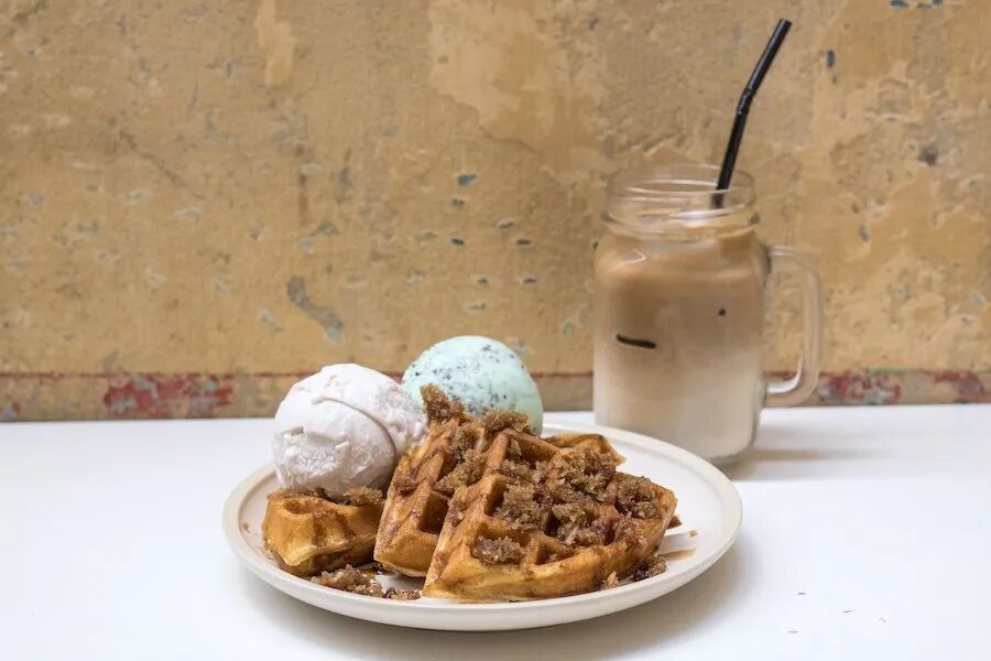 Three's A Crowd 是冰淇淋华夫饼店,招牌Churros Waffles(8 新元)外皮松脆、内里蓬松,搭配 4.50 新元起的冰淇淋更佳,烤开心果等口味很受欢迎。