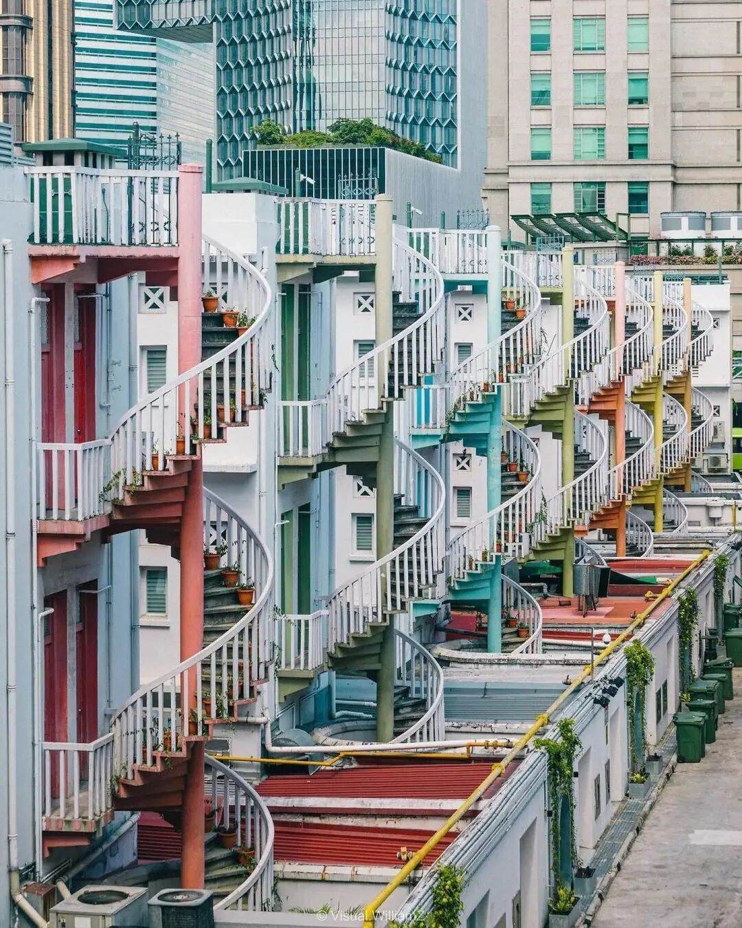新加坡传统店屋,五颜六色,2-3层楼高,1楼开店,2-3楼就是住家。