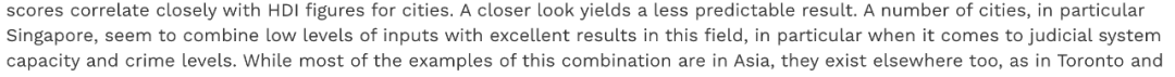 环境安全的评估方面主要为可持续发展、碳排放等方面。在这个维度上,人均收入在中低水平的城市更具备优势一些,所以新加坡这方面的排名才到了37名。