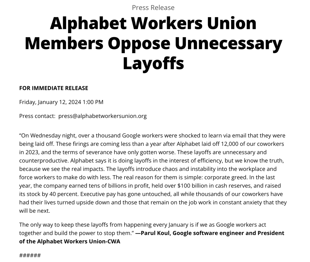 谷歌今年的裁员从1月10日开始,就陆续解雇了1000多名员工。