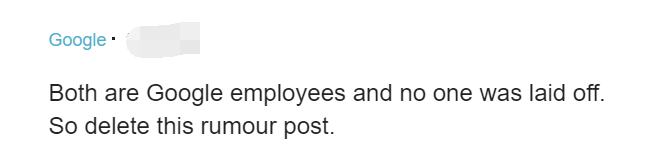 男方是软件工程师,女方职位未透露。但在行业论坛Blind上,一些Google员工发声证实夫妻二人所在组别都没裁员。