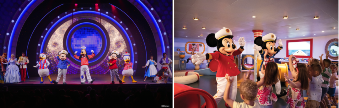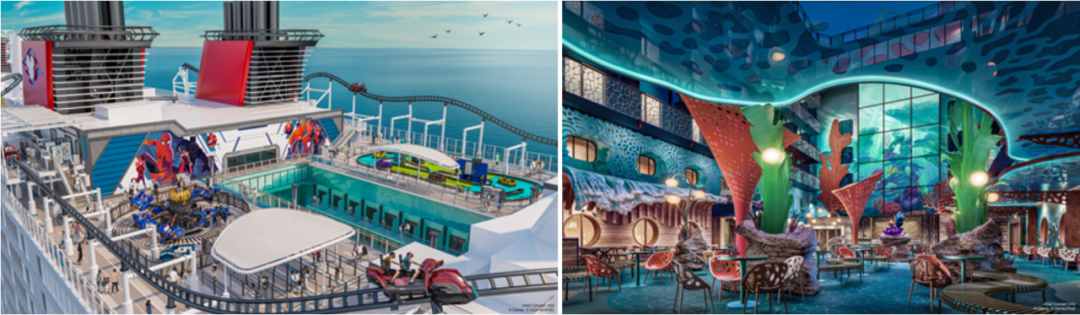 迪士尼冒险号游轮不普通,可容纳 6700 人,有 2500 个迪士尼角色,客舱、7 大互动区均有迪士尼等元素,还有表演、儿童活动与俱乐部。
