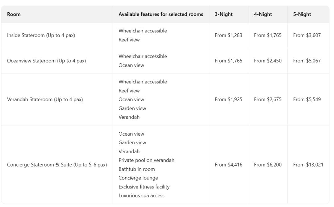 - 游轮设多样客舱,票价因舱型与行程时长而异,各舱室观景与设施不同,内部还有丰富活动区及美食。若行程延误,游客可改期或申请退款。