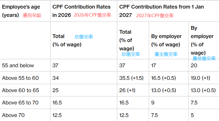 年龄在55岁以上至65岁的员工,只要每月收入超过750新元,无论其薪资水平如何,其缴交率都将发生变化。