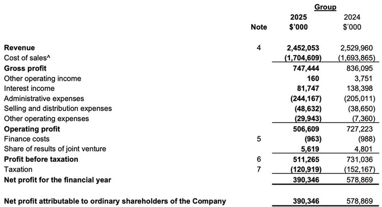股息方面,云顶新加坡宣派中期股息每股0.02新元,并建议派发末期股息每股0.02新元,使2025财年总股息达到每股0.04新元,与2024财年持平。
