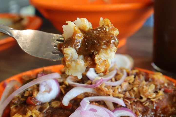 新加坡港式猪肠粉遍地开花,马来风味却鲜少出圈,Ipoh Curry Chee Cheong Fun 的 Ipoh Curry Char Siew Chee Cheong Fun 售 5.30 新元,粉皮薄如粿条,咖喱甜淡微辣、香气浓郁,搭配大块叉烧与多样配菜,风味地道。