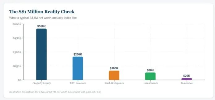 在这个阶段,一个不错的净资产规模,包括公积金和房产净值,大概在60万到150万新元之间。