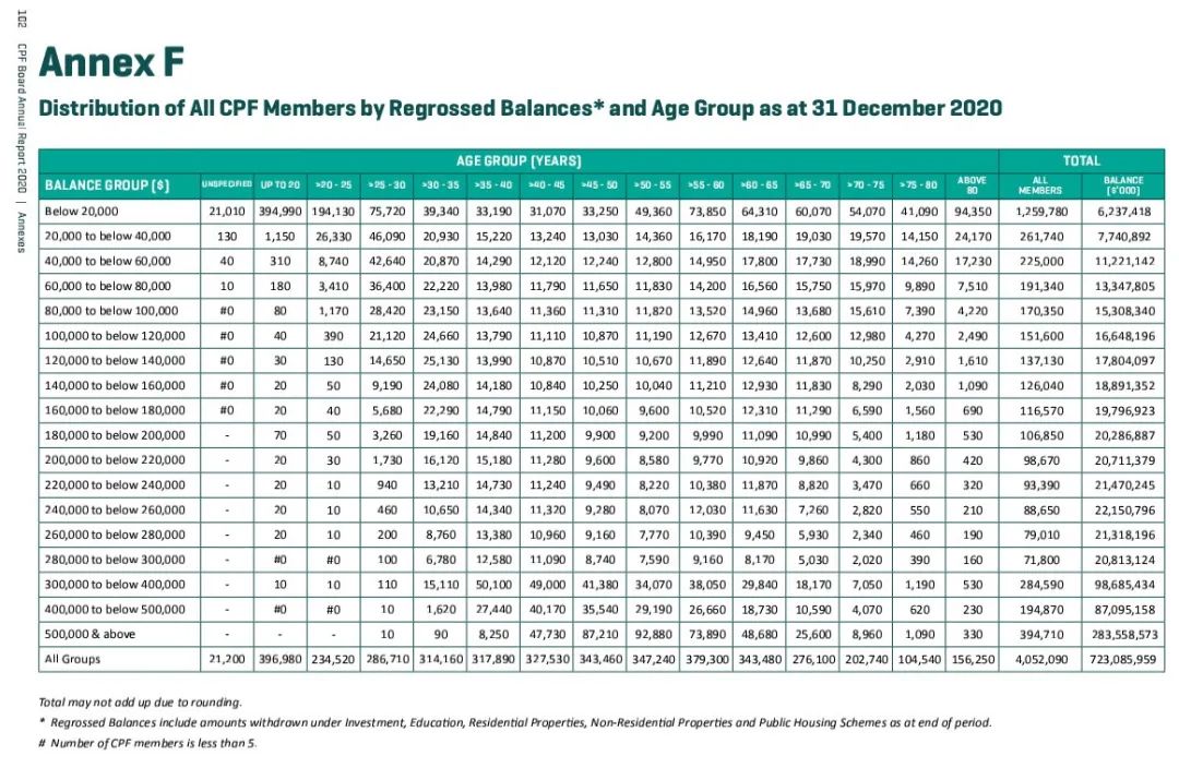 新加坡中央公积金局的年报出来啦!图源:新加坡中央公积金局在年报中,有不少数据值得关注~比如,竟然有39万4710公积金会员的公积金存款超过了50万新币!点击看大图图源:新加坡中央公积金局这些人绝对都是攒钱达人啊!这样存下去,公积金账户破百万不是梦。图源:culture trip在这近40万的公积金富豪里,只有10人的年龄在30岁以下。有90人的年龄在30岁到35岁区间。图源:ucsf人数最多的年龄段在50-55岁,这部分人群高达92880人。按照逻辑来说,其实年龄越大的公积金会员,账户的存款会越多。图源:hufpost但在55岁以上的年龄段,公积金账户存款超过50万的会员人数越来越少。图源:网络这也和新加坡年满55岁的会员便可提取部分公积金存款的政策有关。不过,大部分人的公积金存款在2万新币以下,这部分公积金会员的人数约为126万人。图源:the business times公积金账户存款人数第二名的并不是2万到4万新币的区间,而是30万到40万新币区间。这部分会员数为28万4590人。图源:rikvin第三名就到了2万到4万新币的区间了,人数为26万1740人。在新加坡,公积金存款不只是为了买房,还是一个很受欢迎的理财手段。多年来,新加坡CPF的利率一直非常稳定。图源:新加坡中央公积金局有不少人从年纪轻轻开始,便积极填补公积金账户。父母也会为孩子填补公积金账户,让孩子的生活多一层保障。图源:网络新加坡的公积金制度在国际上也得到了充分的认可,已经连续12年被评为为亚洲最佳的退休养老制度。不少网络达人会在社交平台上,分享自己打理公积金账户的心得。更是有理财师认为,大家可以尝试把自己的公积金账户小目标设为100万新币,让自己65岁以后的老年生活更有尊严和保障。图源:网络在即将到来的第三季度,公积金利率依然继续维持原有的利率。普通账户的存款维持在2.5%,保健储蓄账户维持在4%,退休账户亦是4%。亲爱的椰友们,你们的公积金账户的攒钱小目标是多少呢?