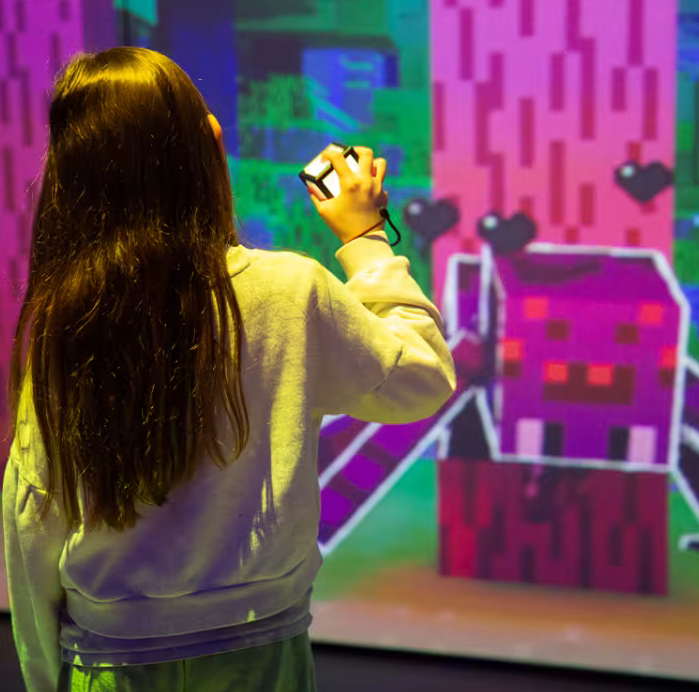 你可以和伙伴一起,开启一小时的实景冒险,走进七个不同的生物群系,一边解谜一边对抗游戏里的经典角色,不分年龄大小,都能尽情参与。