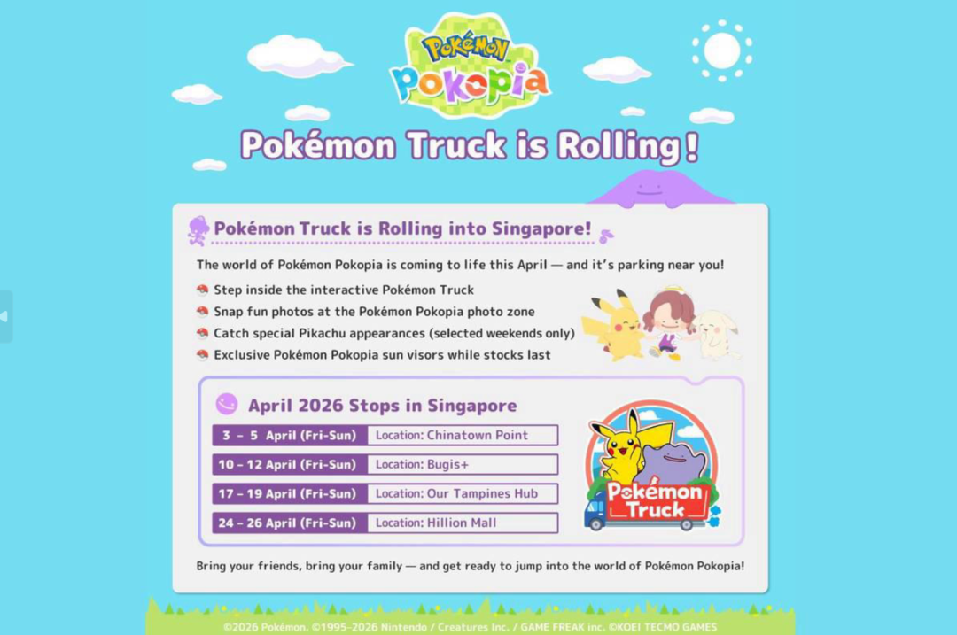 宝可梦卡车正在新加坡各大商场巡回,把每次停在一个地方,就把门口广场变成Switch 2游乐场。
