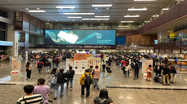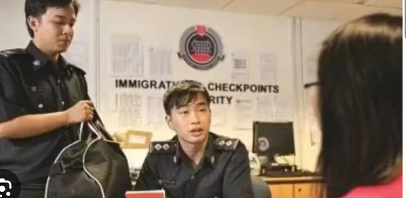 一名中国旅客以免签方式入境新加坡时,被移民官员带到一旁接受询问。