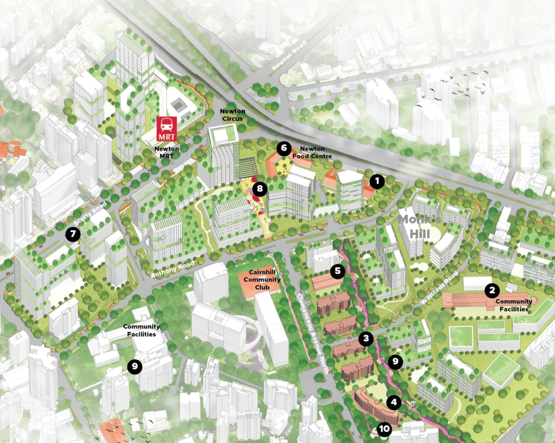 Newton Circus、Scotts Road和Monk’s Hill将新增5000个住宅单元,而Monk’s Hill Road将被改造成绿意盎然的线性公园,周围是珍贵的历史建筑,如前Monk’s Hill中学和女童军总部。