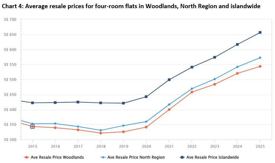 在价格增长最强的五个市镇中,两个位于北部区域,即兀兰和三巴旺。其他区域没有一个以上市镇上榜。这表明兀兰的四房式组屋不仅价格适中,还具有较强的资本增值潜力。