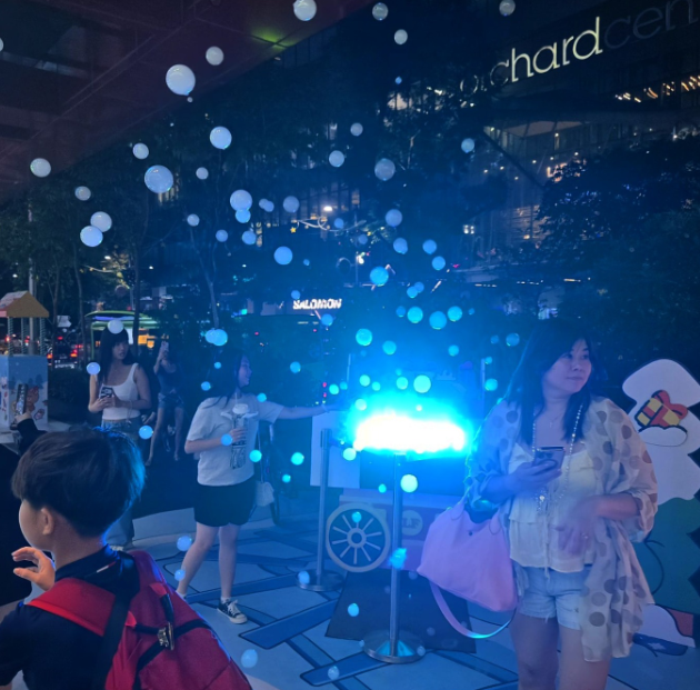 走出 The Centrepoint,解锁 LINE FRIENDS 圣诞限定合影!站台有穿拐杖糖红装、持圣诞灯的角色,CONY 站长在售票处等候,SALLY 机车装满礼物,周末还有烟雾气泡机加持,让照片氛围感拉满。