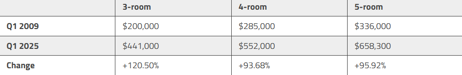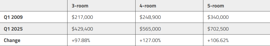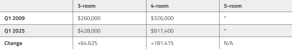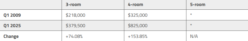 因此,大巴窑的四房式组屋转售价格在2025年也上涨到2009年的三倍,这并不奇怪。