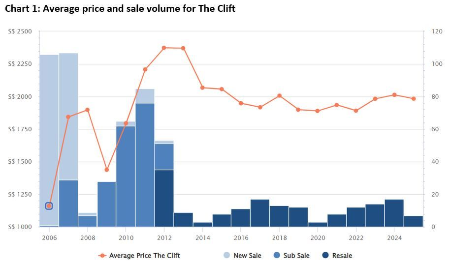 翻看历史数据可以看出,The Clift公寓的平均尺价在2011年达到每平方英尺2,208新币,2012年进一步上涨至每平方英尺2,373新币的历史新高。
