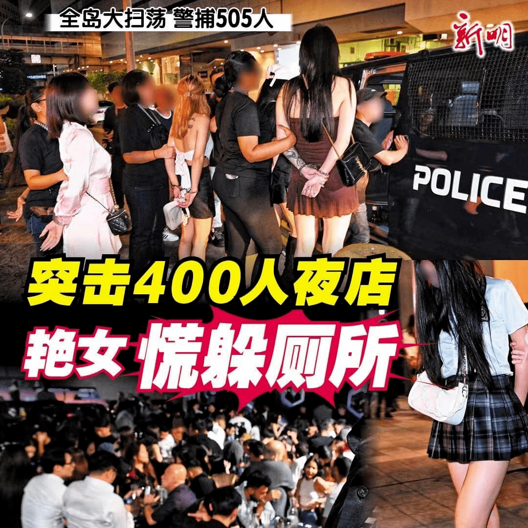 根据新加坡本地媒体《新明日报》记者随行采访报道,这次警方动员了近1900名警员,执法行动横跨多个部门。其中,夜场是重点被打击的对象。