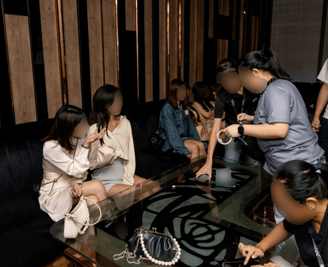 在进行调查时,他们发现多名来自越南、韩国和泰国的浓妆艳抹的女子涉嫌无照陪酒,被带到包厢问话。