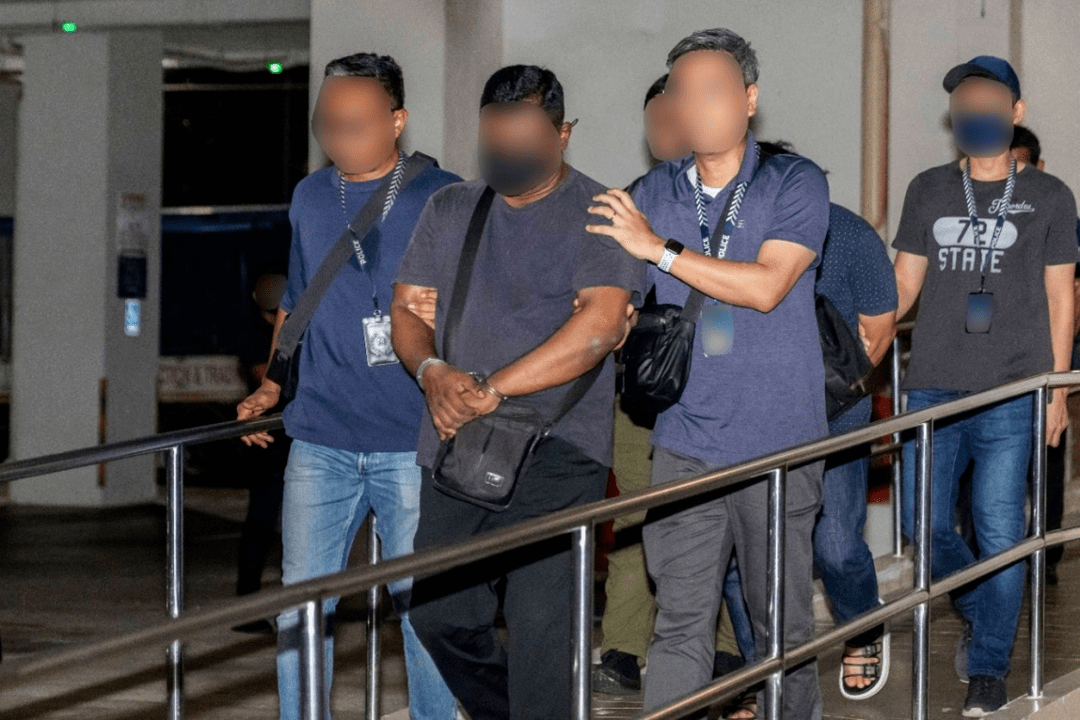 其中一名被警察带走的嫌疑人,图源:新加坡警察部队