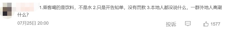 微博上,不少网友表示地铁方面的处理很合理。本身地铁上就是公共场所,且这名女子喝的不是矿泉水而是果汁,万一不小心倒出来了不管是在座位上还是地板上,都会干扰其他乘客再次使用。