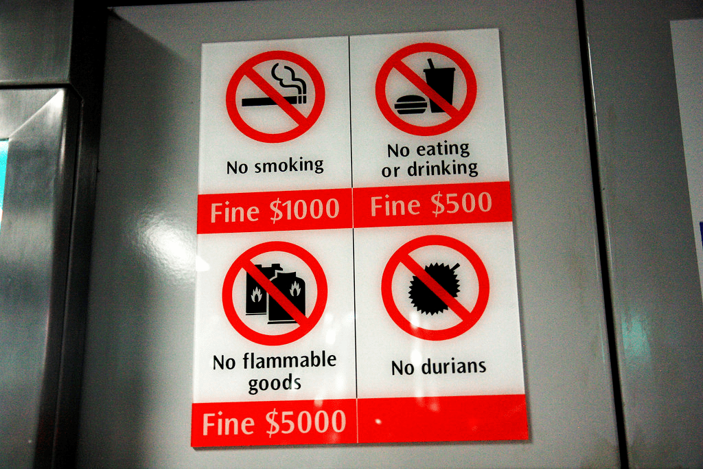 说起来,在新加坡地铁上和地铁站内,我们经常都能看到这个显眼的指示牌:
