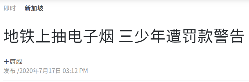 《联合早报》曾在2020年报道,三名年龄分别为13岁、16岁及18岁的青少年被人拍到在地铁车厢内吞云吐雾,当局在接到举报后立即展开调查。