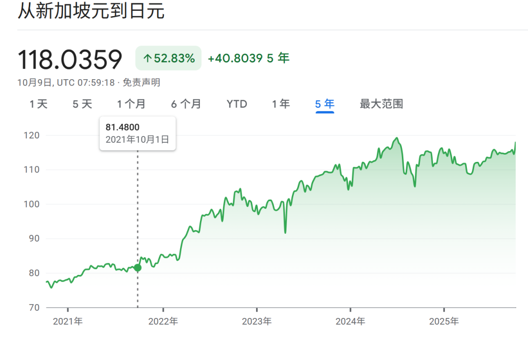 10 月 8 日当天,S$1 可以换到 ¥180,比前阵子出发的旅客,直接多出好几碗拉面钱。