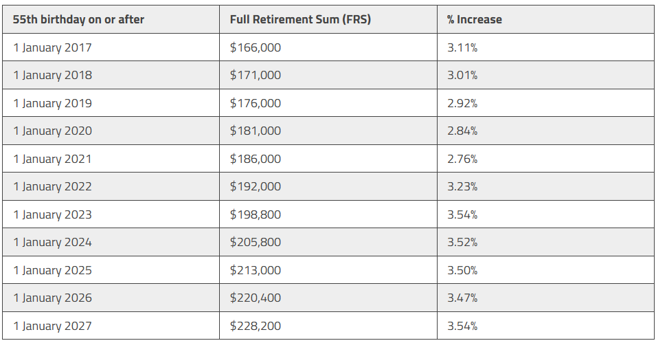 不过,FRS旨在保障新加坡的基本退休生活,因此它需要跟上通货膨胀和生活水平提高的步伐。简而言之,全额退休存款标准每年都会增加。
