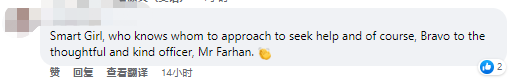 “那时,她向助理站长法尔汗Muhammad Farhan bin Mohammad求助,后者非常愿意帮助!法尔汗确认了女孩的学校是在玛达站,但担心女孩独自上学出事,决定陪她一起去学校。”