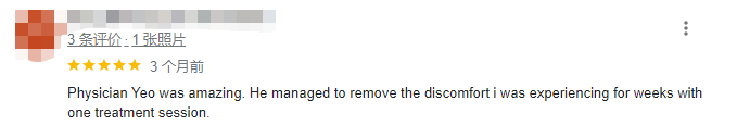 新加坡连锁中医诊所,拿手项目是针灸、推拿、拔罐、刮痧,小儿推拿和设备理疗。