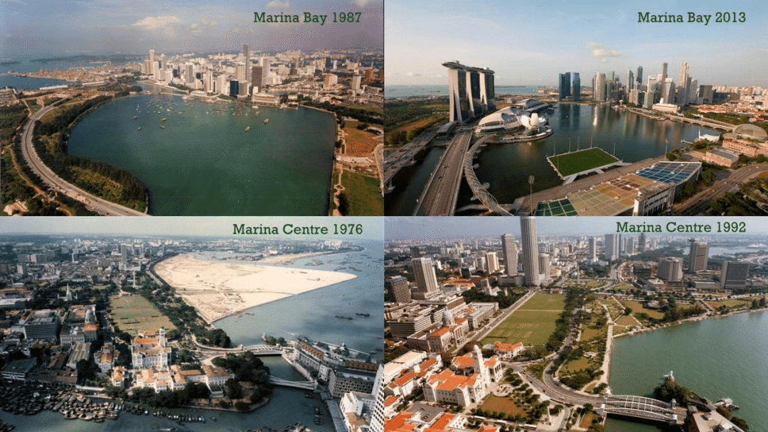 例如,滨海湾地区、樟宜机场、圣淘沙、莱佛士坊等我们熟知的地标,都建在填海土地之上。