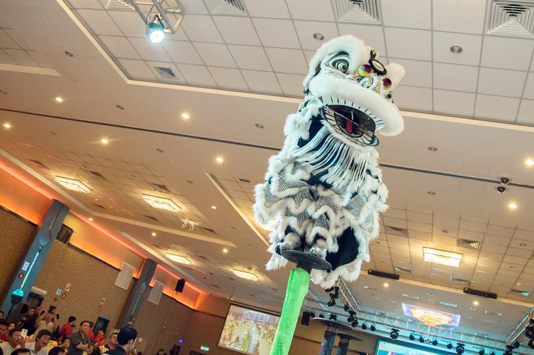 AEON Mall Tebrau City 新春路演有舞狮、财神等表演,设摊售年货礼篮、小吃与装饰。