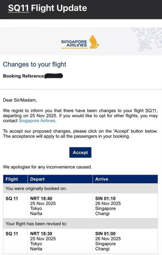 航班变动若能提前通知,可及时调整行程。建议起飞前数日及当日各查一次邮件,航司一般会主动告知变动,哪怕是提前 10 分钟这类小调整,也可能影响出行计划。