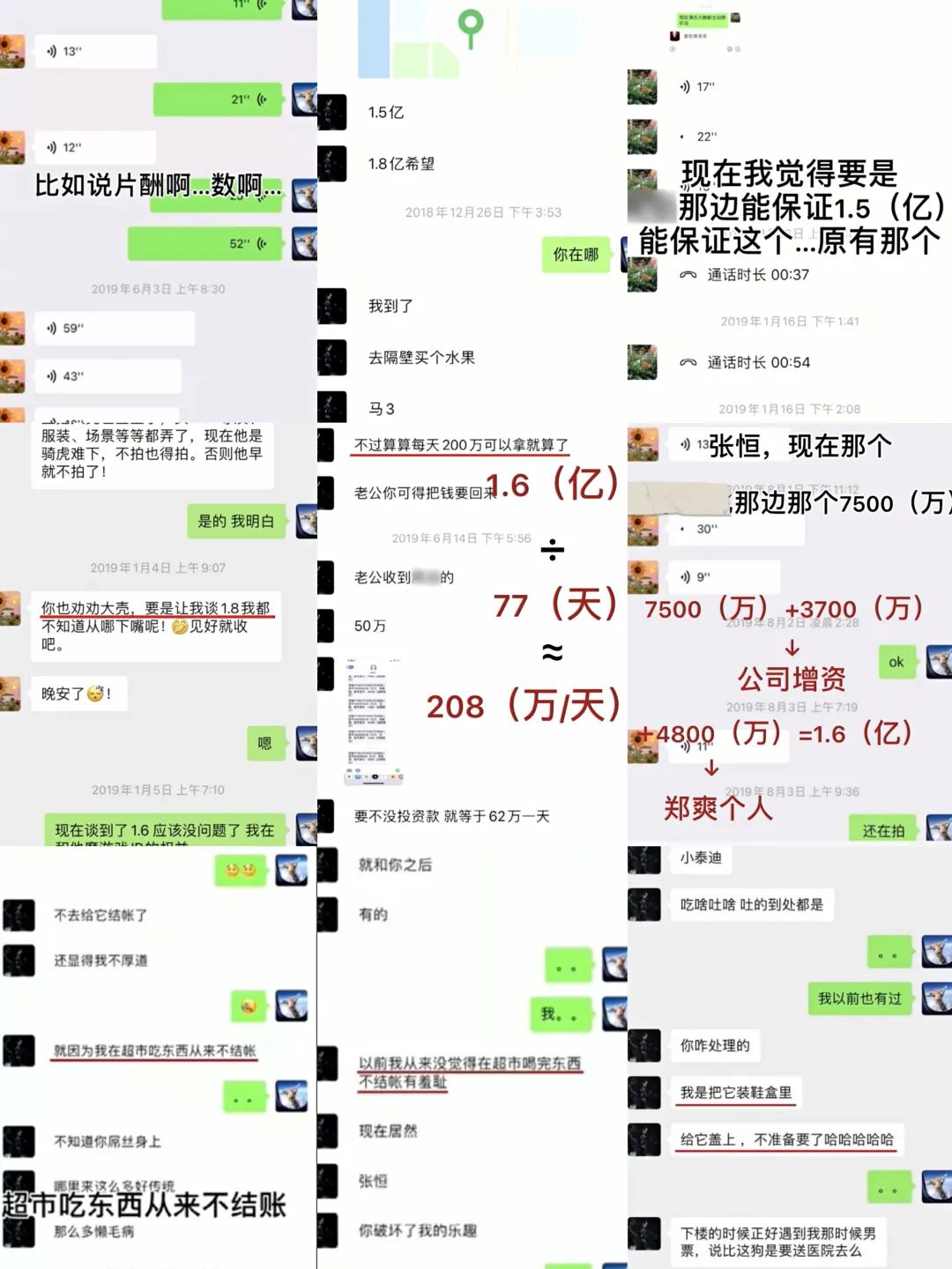 张恒晒出多份合同,称郑爽表面上的片酬是4800万,其余1.12亿则增资到郑爽母亲创办的公司中。