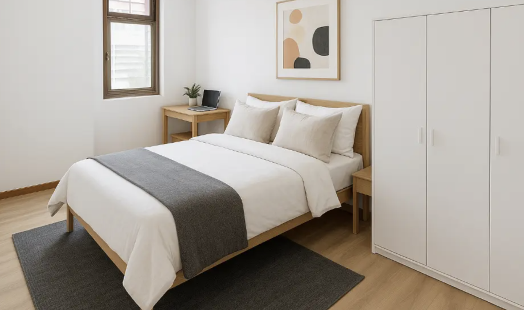 ▫️ 私密性拉满:独立卫浴+大床+定制衣柜