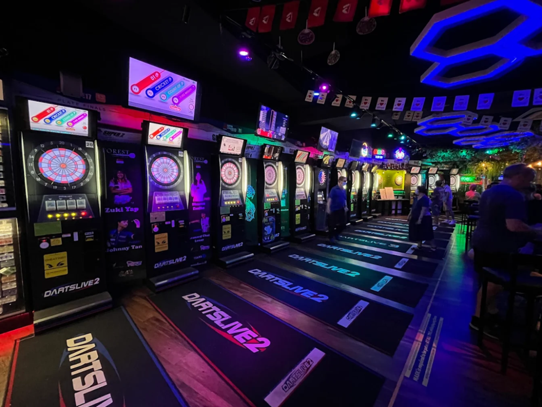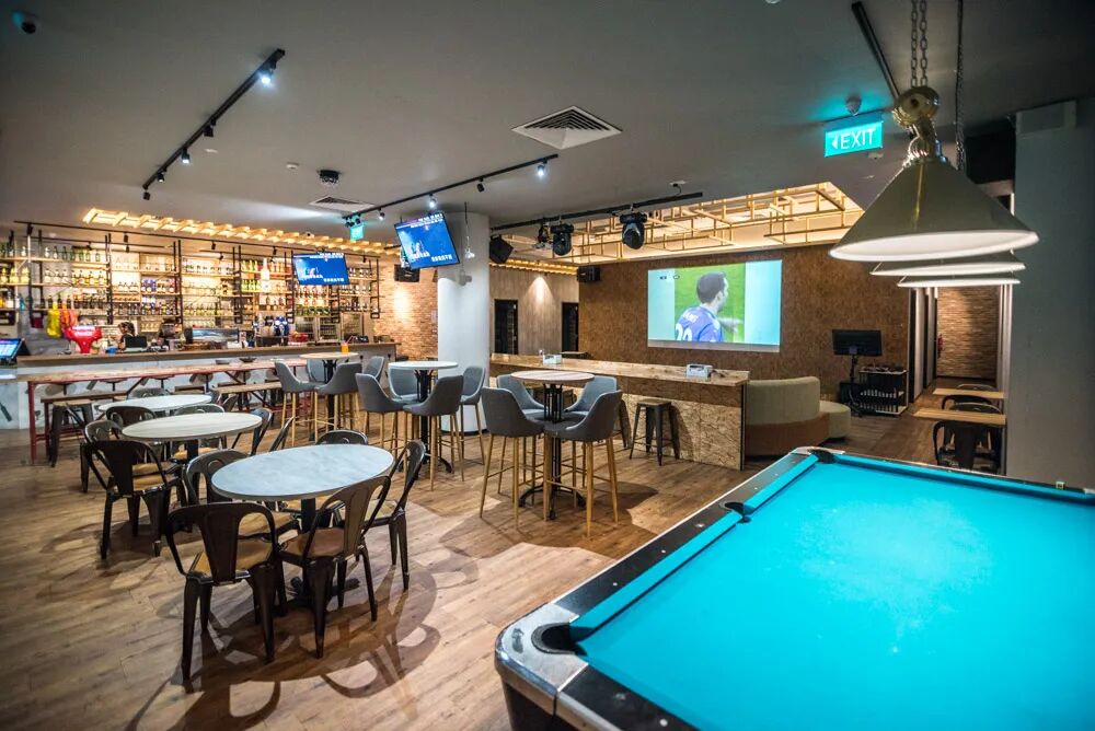 这里球桌每小时只需要10新元起,认真练球的人还能录下自己的打法,慢慢琢磨动作,复盘改进技巧,场内还带LED 大屏的运动酒吧,打完几局就能坐下来歇歇。