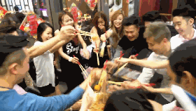 捞红萝卜丝时说,“鸿运当头!”