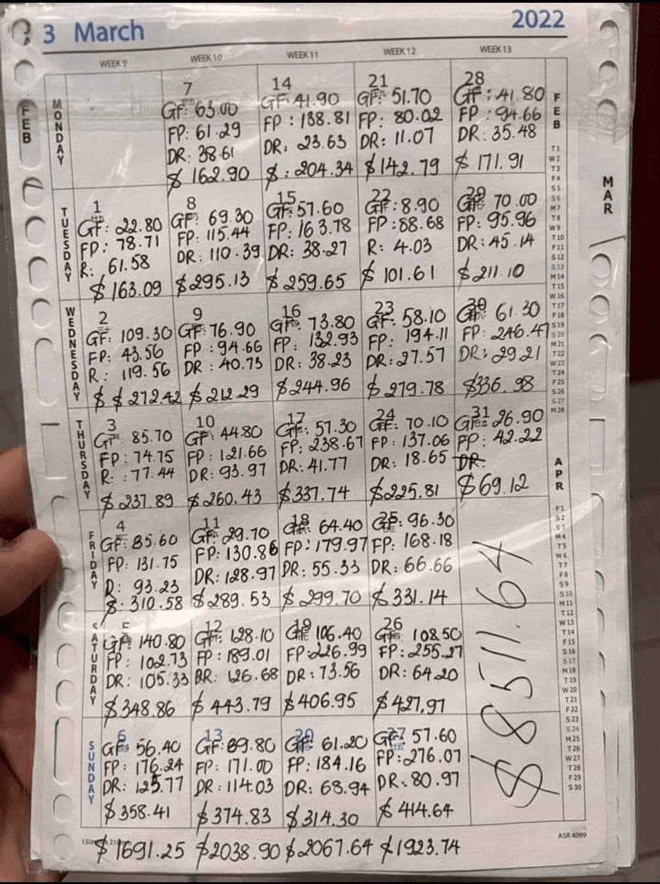 在本地论坛Hardwarezone上,一名用户晒出了一名外卖小哥手写记录下的收入。