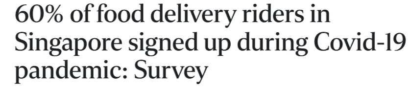 在新加坡进行的一项调查中,显示有60%的外卖送餐员,是在疫情大流行期间开始工作的。