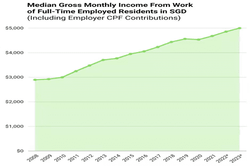 去年新加坡的月薪中位数,也不过4638新币,还是包括雇主缴交的CPF公积金在内......