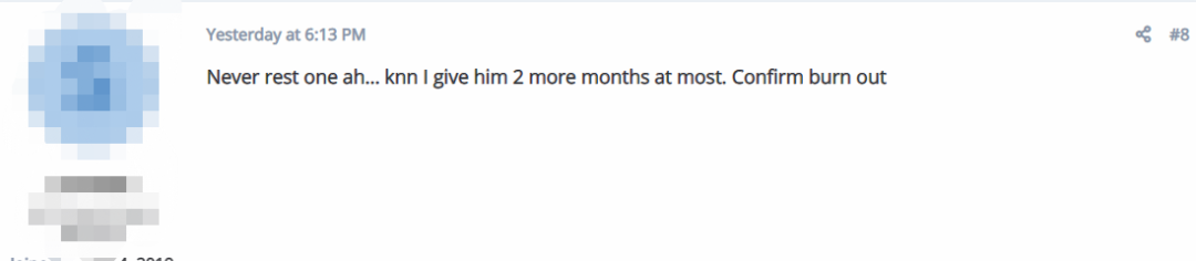 也有不少人认为这种工作强度不具备可持续性,可能最多两个月就会过劳。