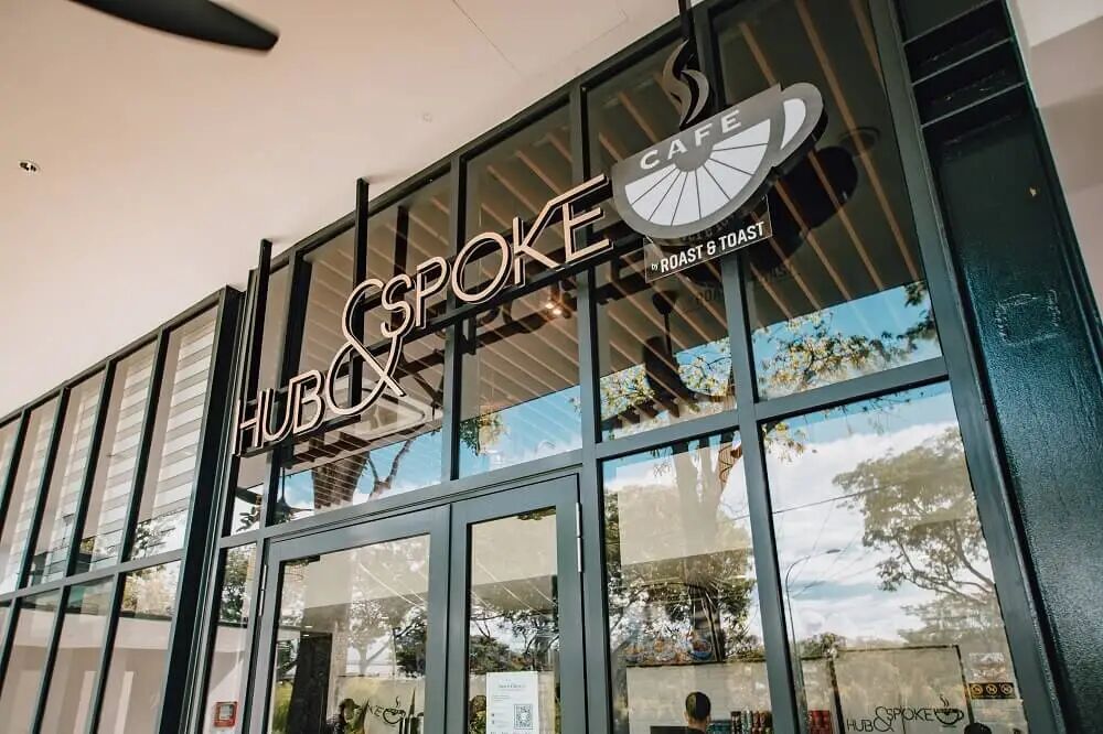Hub & Spoke Cafe 采光佳、氛围温馨,供应本地及西式餐点,早餐有咖椰吐司等,还含仁当牛肉等经典菜,店内设亲子图书角,顾客可自助免费冰宝石饼干。