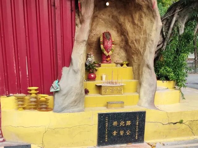 停车场中央竟藏着一座小庙!就在桥北路熟食中心旁,由摊主们为祈求杀生慈悲而建,供奉着孙悟空等神明,神坛上还有块石头代替神像,满满都是故事。
