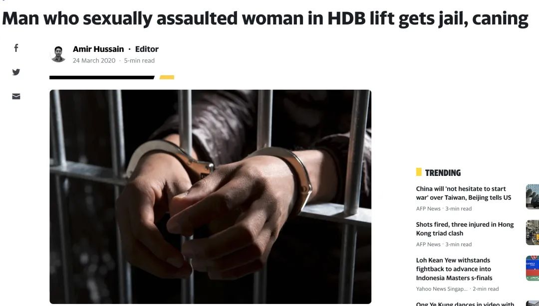 2013年,一名来自中国的客工梁某上了法庭最后被判鞭刑,检方称他在新加坡10天之内袭击了3名女性的胸部和下体敏感部位。