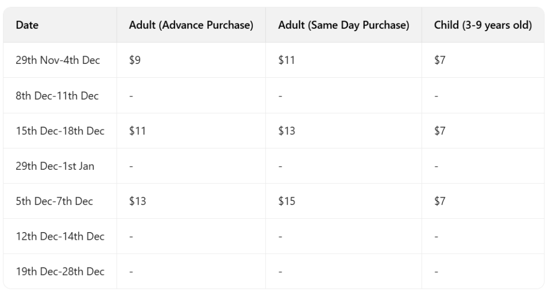 - 门票已开售,成人预售价9新元起,建议提前线上购票。